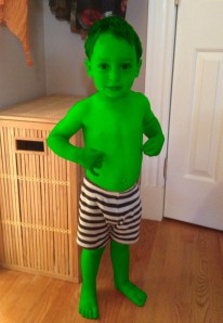When the Hulk transforms, he is often drawn as a shirtless muscular giant who has burst out of his street clothing and wears only pants.  The other day I was looking at my two-year-old son, who was running around with his shirt off.  I was immediately struck with the realization that the Hulk is really a two-year-old having a temper tantrum.