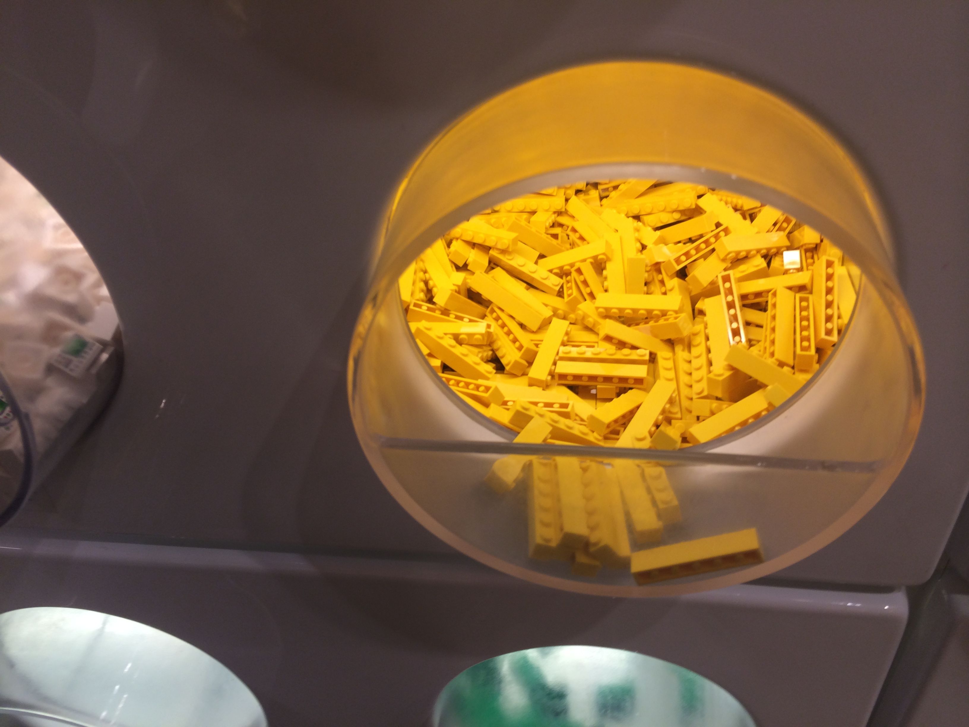 Last weekend, I decided to fix the problem. While my wife and kids shopped at the mall for new fleeces, I snuck into the Lego store and made my way to the back wall. I’d heard rumors that Lego stores had a pick your own section, and sure enough it was real. Separated by size and color were small bins of various utility pieces.
