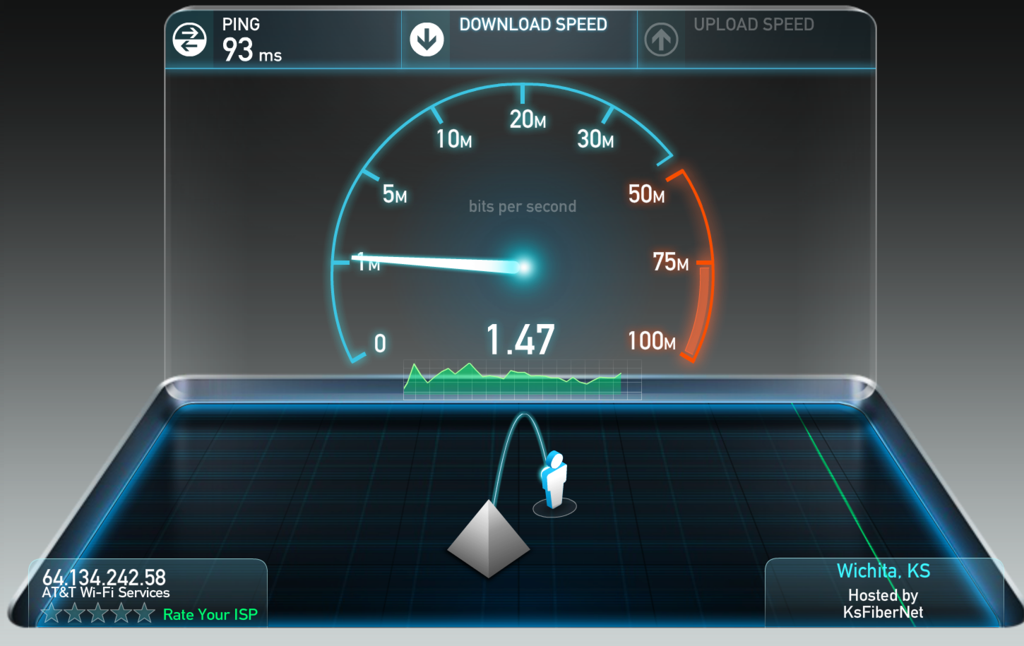 I run a quick test on Ookla’s internet speed tester (www.speedtest.net), and at almost every Starbucks or independent coffee shop, I find the speed clock in at a measly 1 megabit per second.